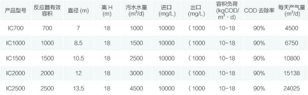 IC厭氧反應(yīng)器由于存在著強(qiáng)大的內(nèi)循環(huán)、傳質(zhì)效果好、生物量大、其容積負(fù)荷遠(yuǎn)比普通的UASB 反應(yīng)器高, 一般可高出3倍左右。處理高濃度有機(jī)廢水,當(dāng)COD 為10000-15000mg/L 時,容積負(fù)荷率可達(dá)10-18CODm3·d。